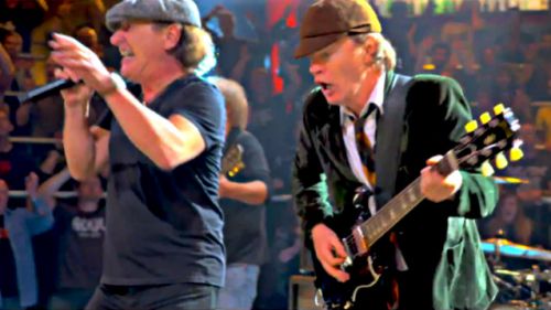 A 'Rock Or Bust' lemez promóciójának keretében, és az AC/DC 40. évfordulójának apropójából a banda lebonyolít egy nagyszabású világkörüli turnét is, melynek során - mint arról korábban beszámoltunk - Angus és Malcolm unokaöccse, Stevie Young látja el a gitáros-posztot. Az 1988-ban a bandával turnézó Stevie Young vette tehát át az Alzheimer betegsége miatt gyengélkedő Malcolm helyét az AC/DC stúdiójában is. (A lenti kép közepén látható Stevie, aki az AC/DC 1988-as turnéjának egyik koncertjén lépett fel a bandával. Malcolm Young ekkoriban alkohol-függősége miatt kényszerült átmenetileg kilépni a zenekarból. A legendák szerint Stevie annak idején annyira hasonlított nagybátyjára, hogy sok rajongó fel sem ismerte a különbséget a színpadon.)